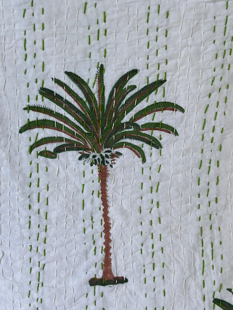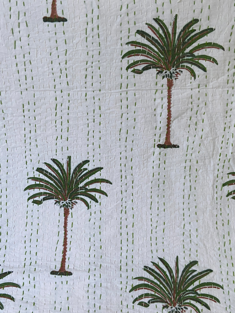 These quilts are hand-crafted in the Rajasthan region of India, and feature Kantha stitching (a simple running stitch).