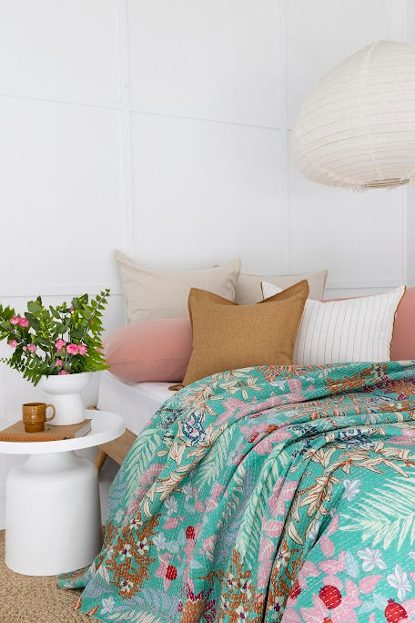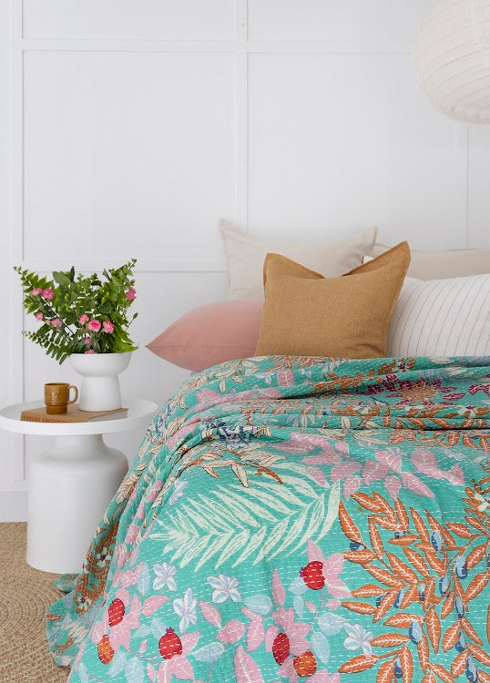 Kantha quilts are a major trend in bed linen right now, made entirely by hand, each Kantha quilt is made from bright fabrics & stunning designs.