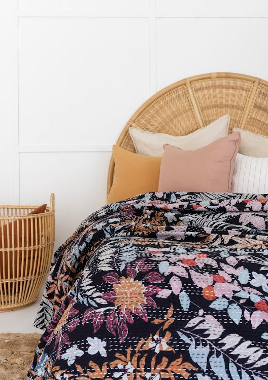 These quilts are hand-crafted in the Rajasthan region of India, and feature Kantha stitching (a simple running stitch).