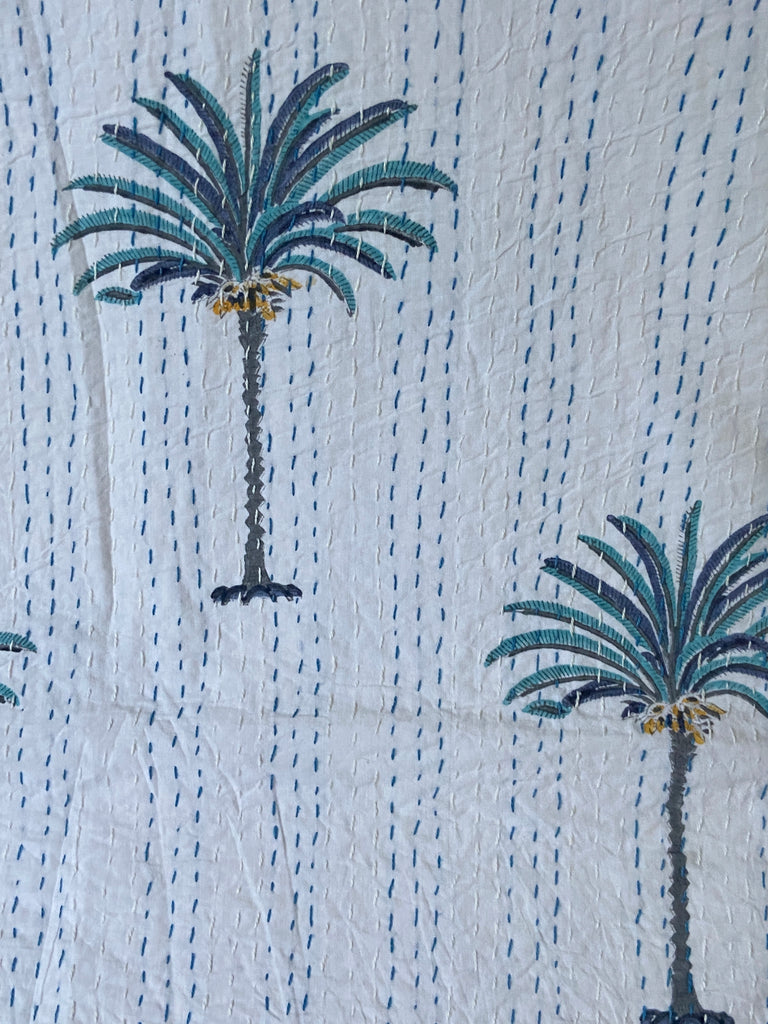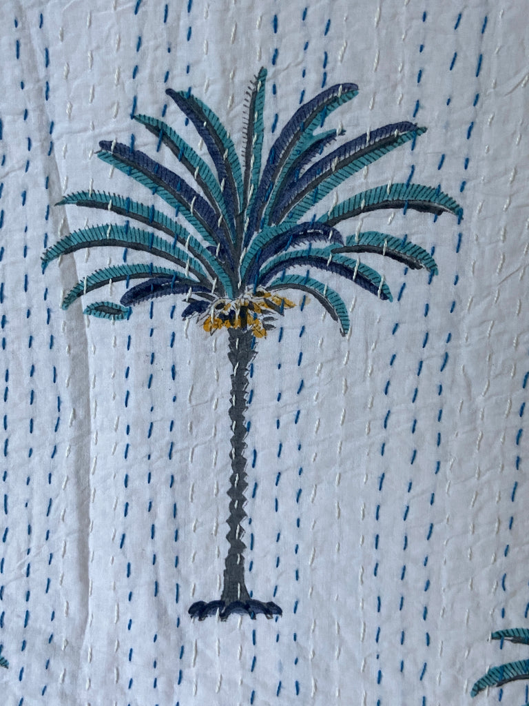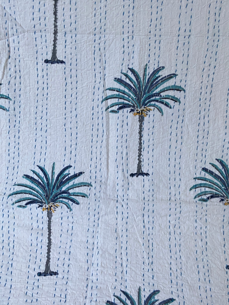 These quilts are hand-crafted in the Rajasthan region of India, and feature Kantha stitching (a simple running stitch).