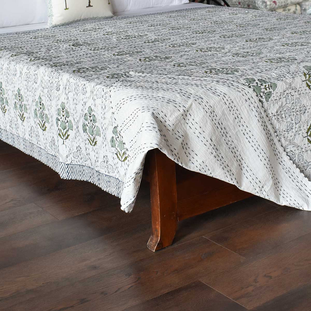 Kantha, Green flowers on white
