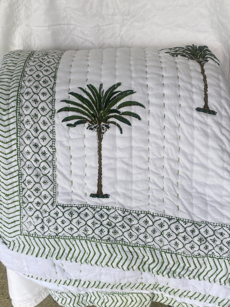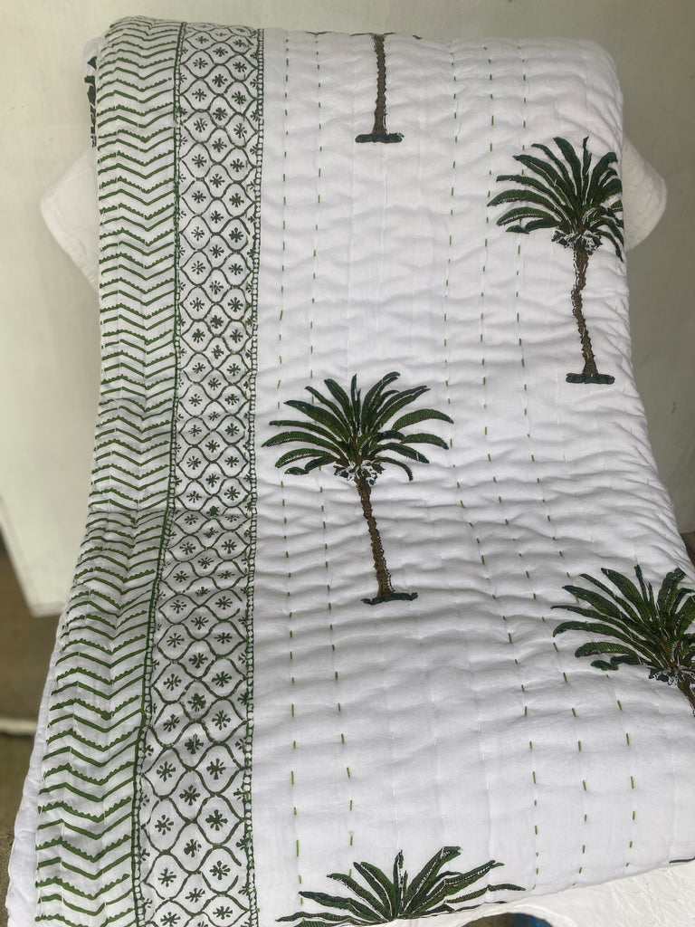 These quilts are hand-crafted in the Rajasthan region of India, and feature Kantha stitching (a simple running stitch).