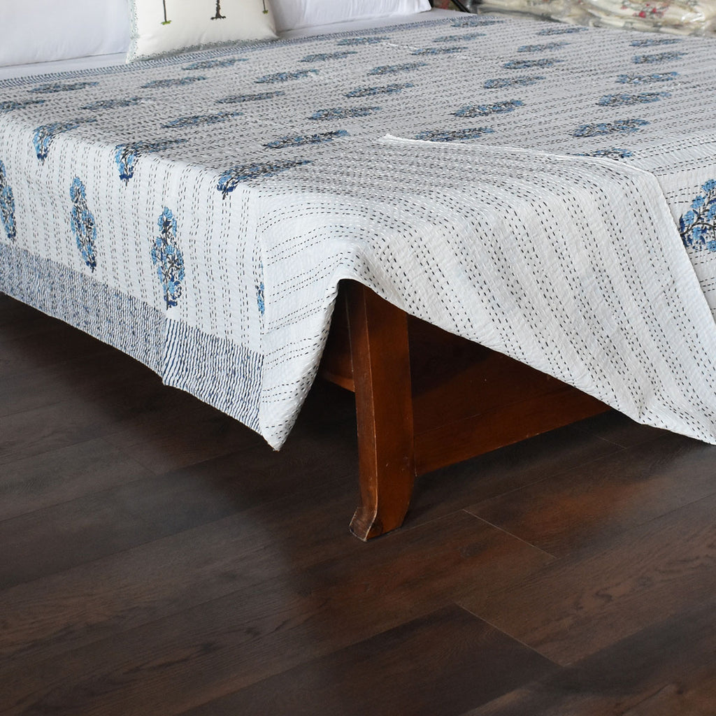 Kantha, White and blue flowers