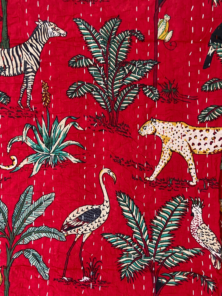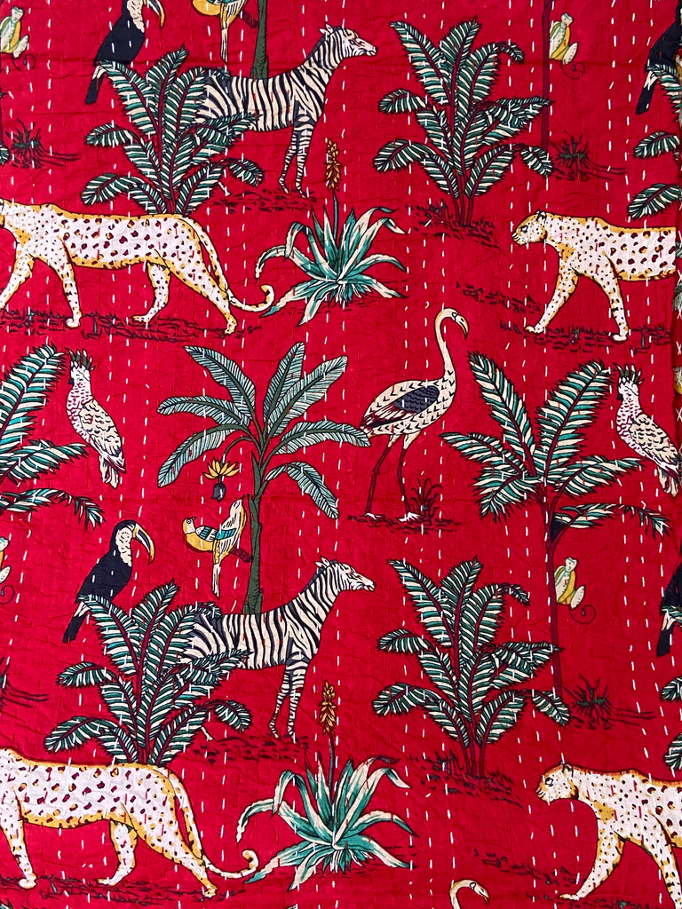These quilts are hand-crafted in the Rajasthan region of India, and feature Kantha stitching (a simple running stitch).