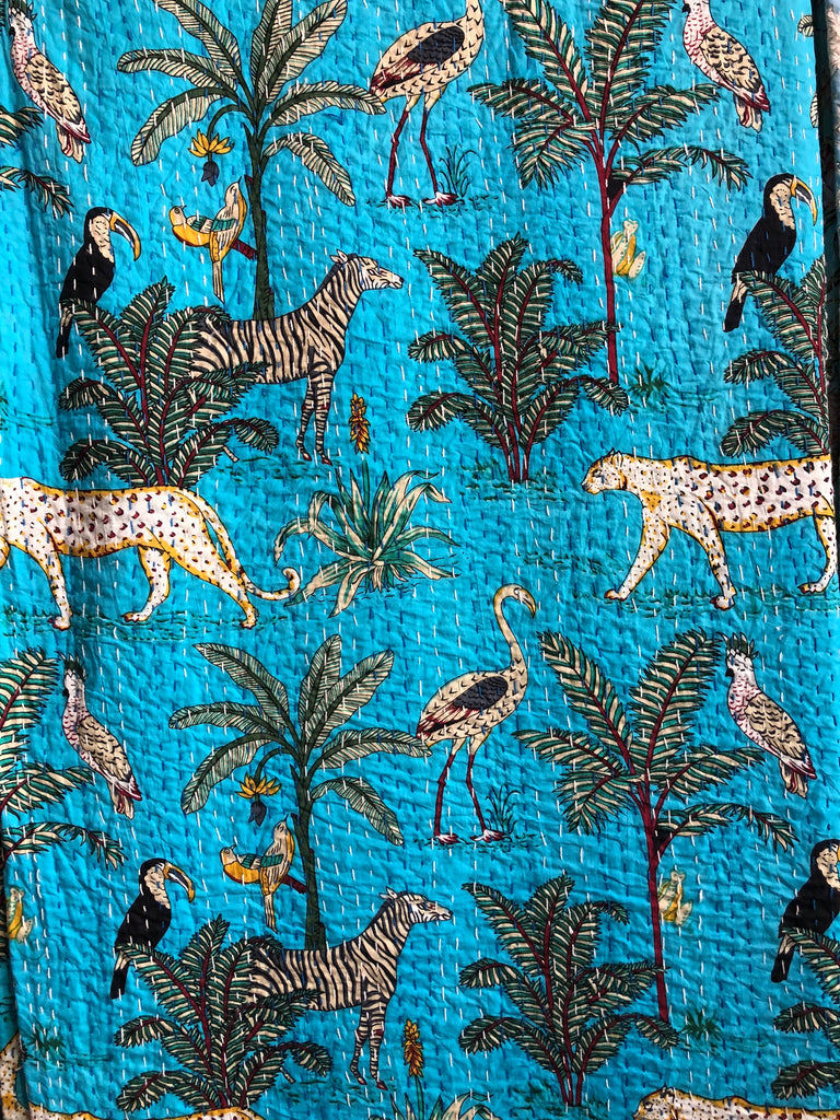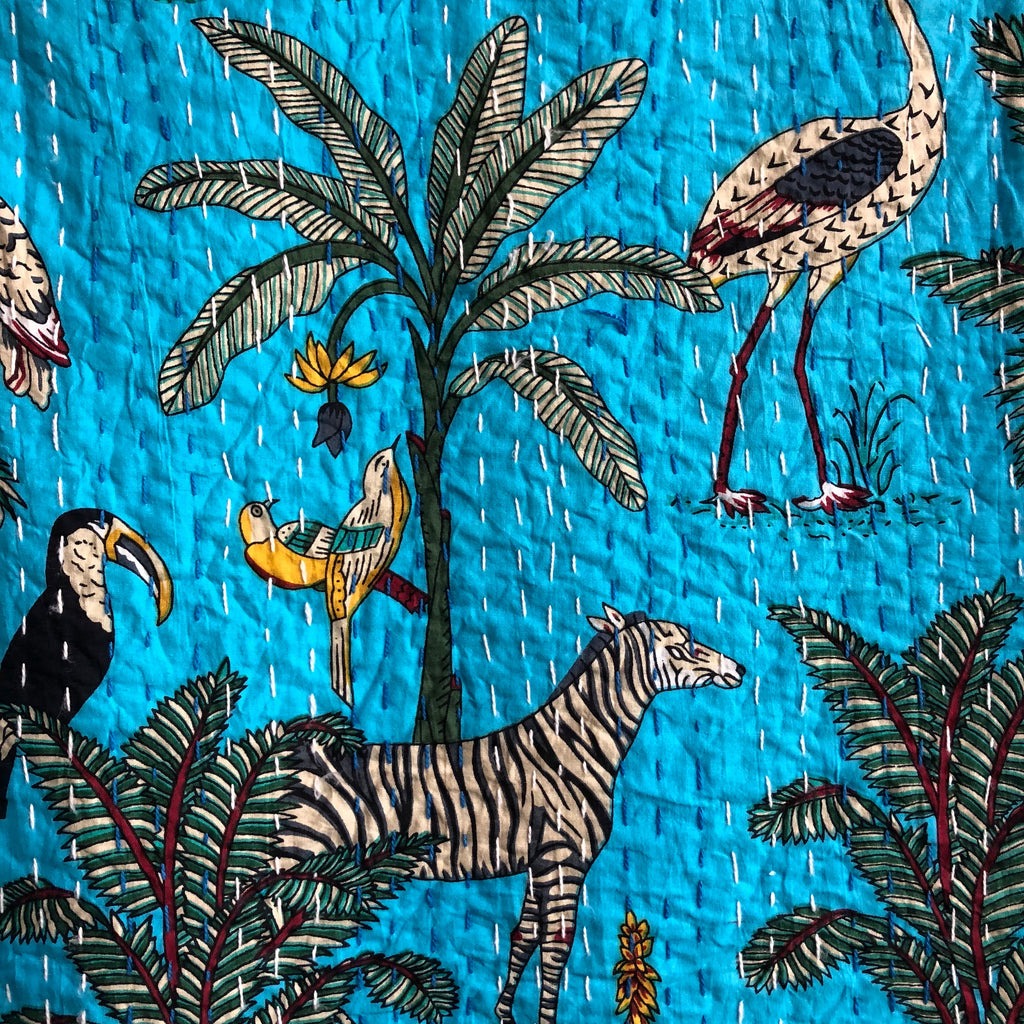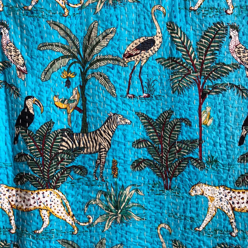 These quilts are hand-crafted in the Rajasthan region of India, and feature Kantha stitching (a simple running stitch).