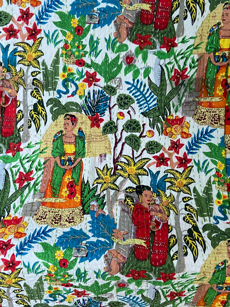 These quilts are hand-crafted in the Rajasthan region of India, and feature Kantha stitching (a simple running stitch).