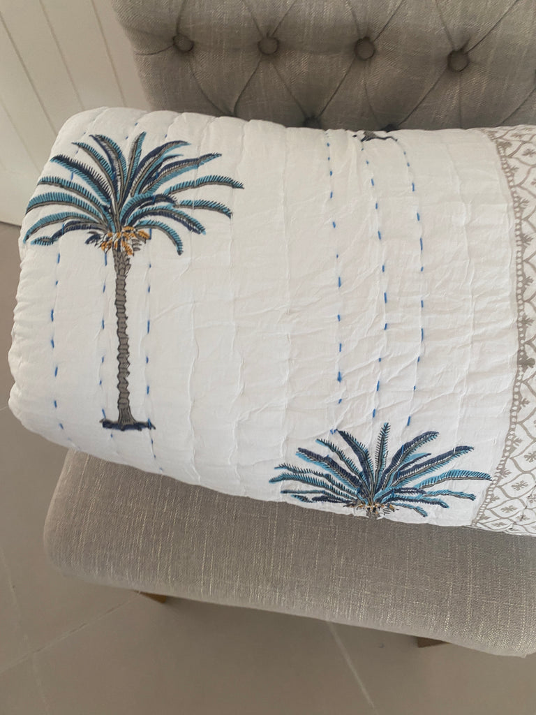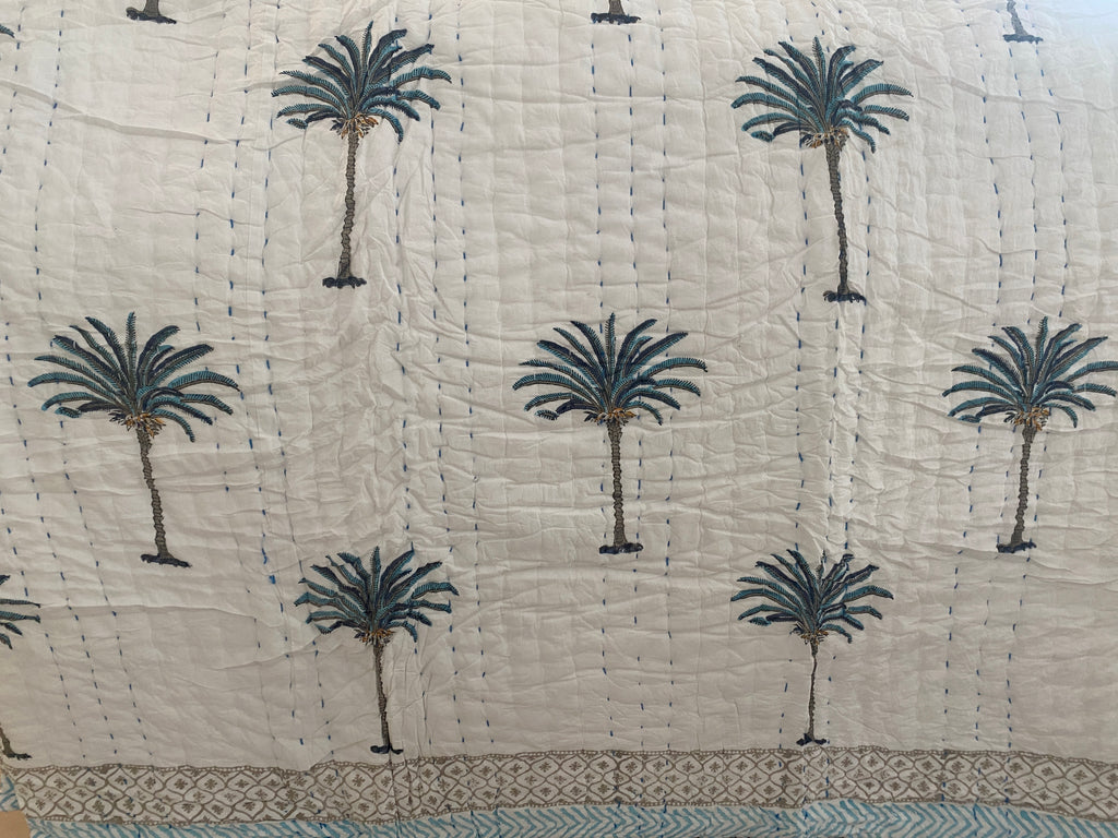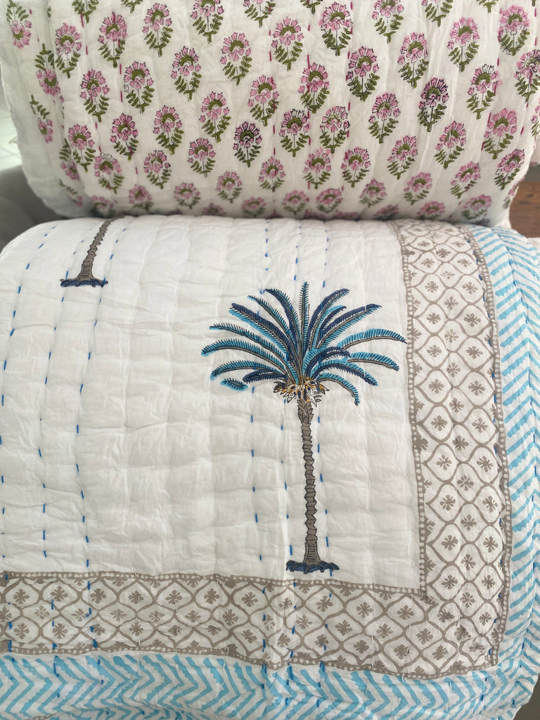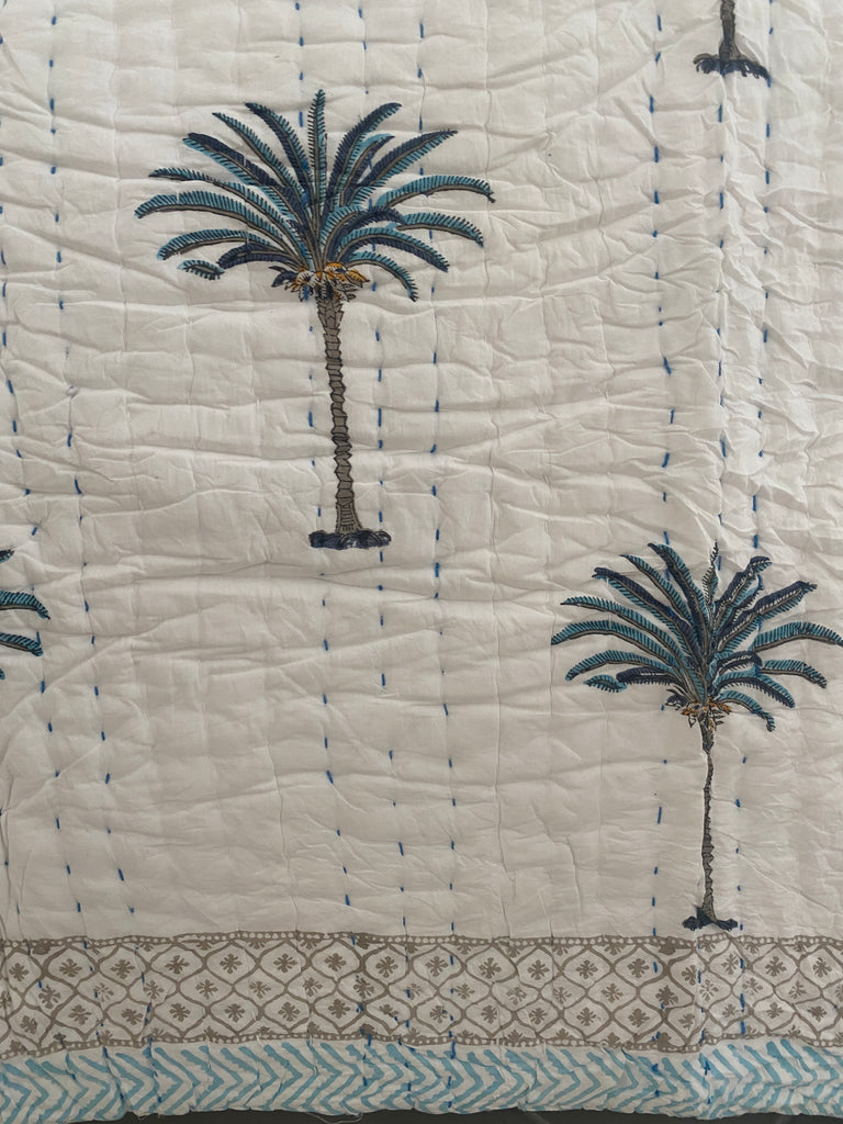 These quilts are hand-crafted in the Rajasthan region of India, and feature Kantha stitching (a simple running stitch).
