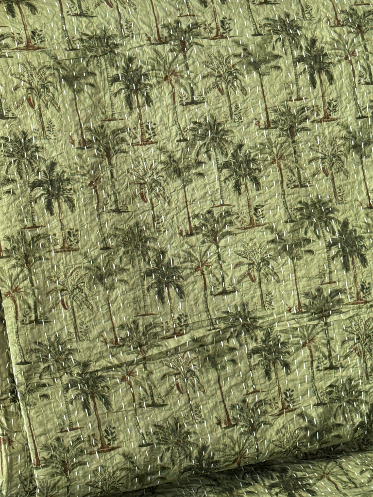 Suitable as a stunning quilt for your bed, a throw over your couch, or doubled over as a decorative end-of-bed throw. These quilts are hand-crafted in the Rajasthan region of India, and feature Kantha stitching (a simple running stitch).