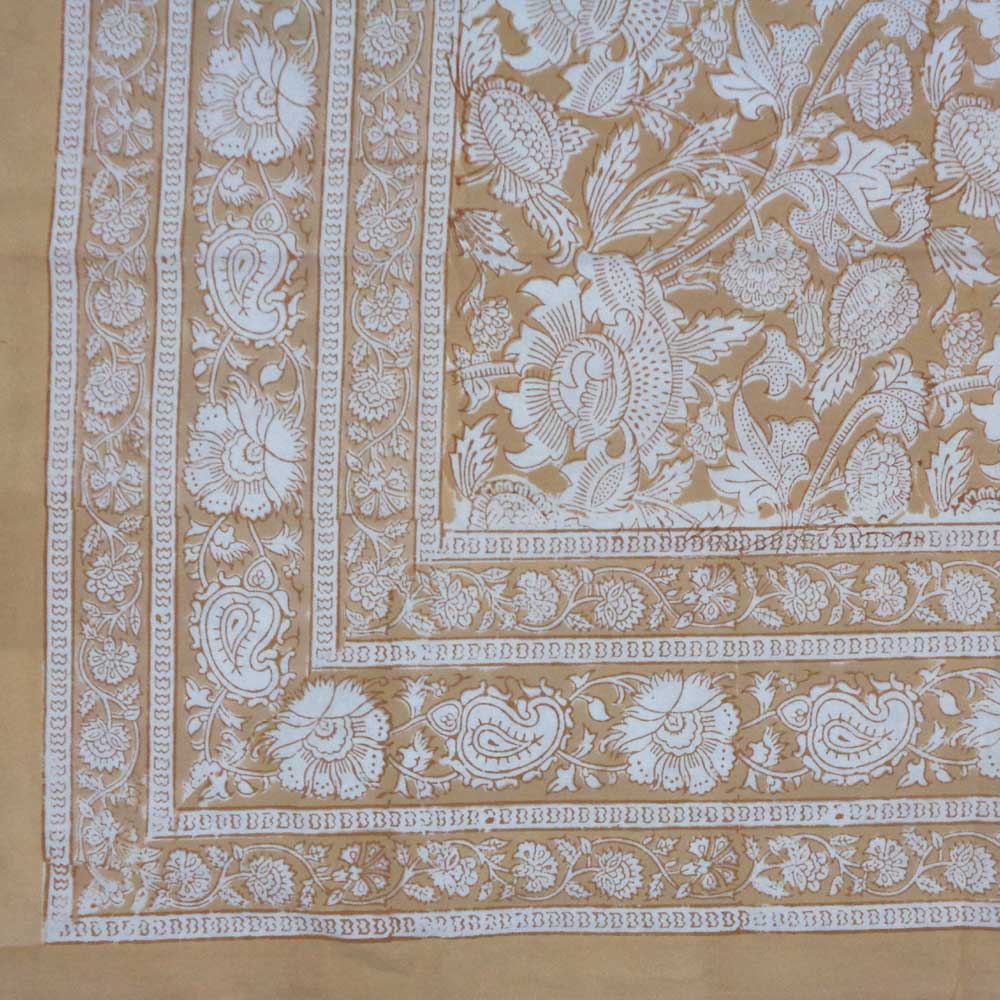 Dress up your table for any occasion with this great hand block printed tablecloth. Made of substantial weight 100% cotton with a decorative complementary border.