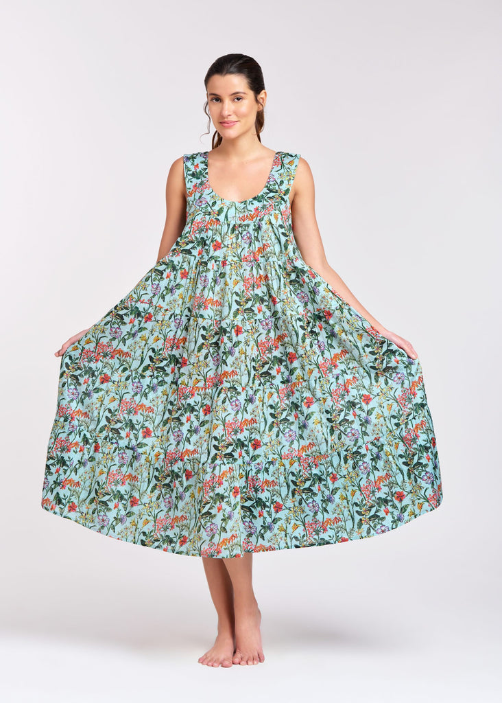 Arabella - Tiered Dress, Green floral (764F5)