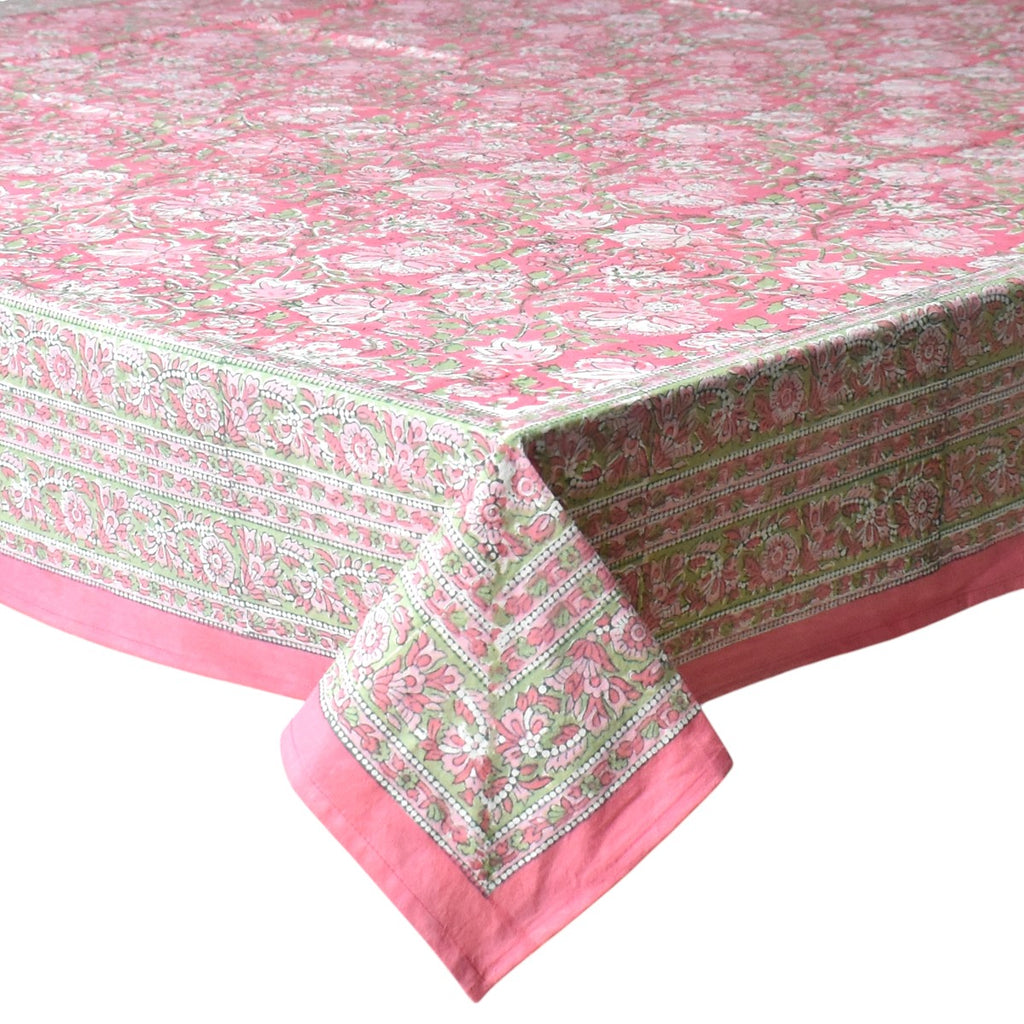 Dress up your table for any occasion with this great hand block printed tablecloth. Made of substantial weight 100% cotton with a decorative complementary border.
